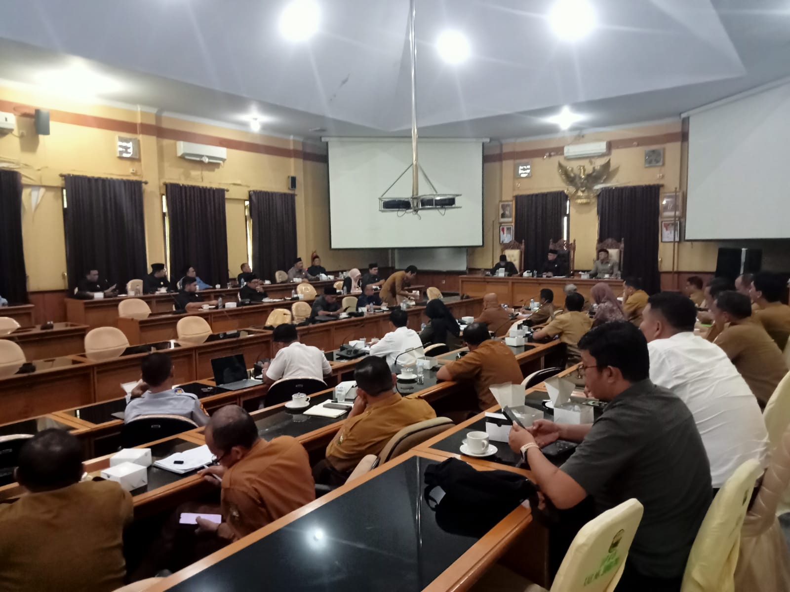 JAMBI.MPN-Kab.Muaro Jambi _ Pimpinan dan Anggota DPRD Kabupaten Muaro Jambi menggelar rapat gabungan bersama pejabat dilingkup Pemerintah Daerah Muaro Jambi, Senin sore 5 Mei 2025.