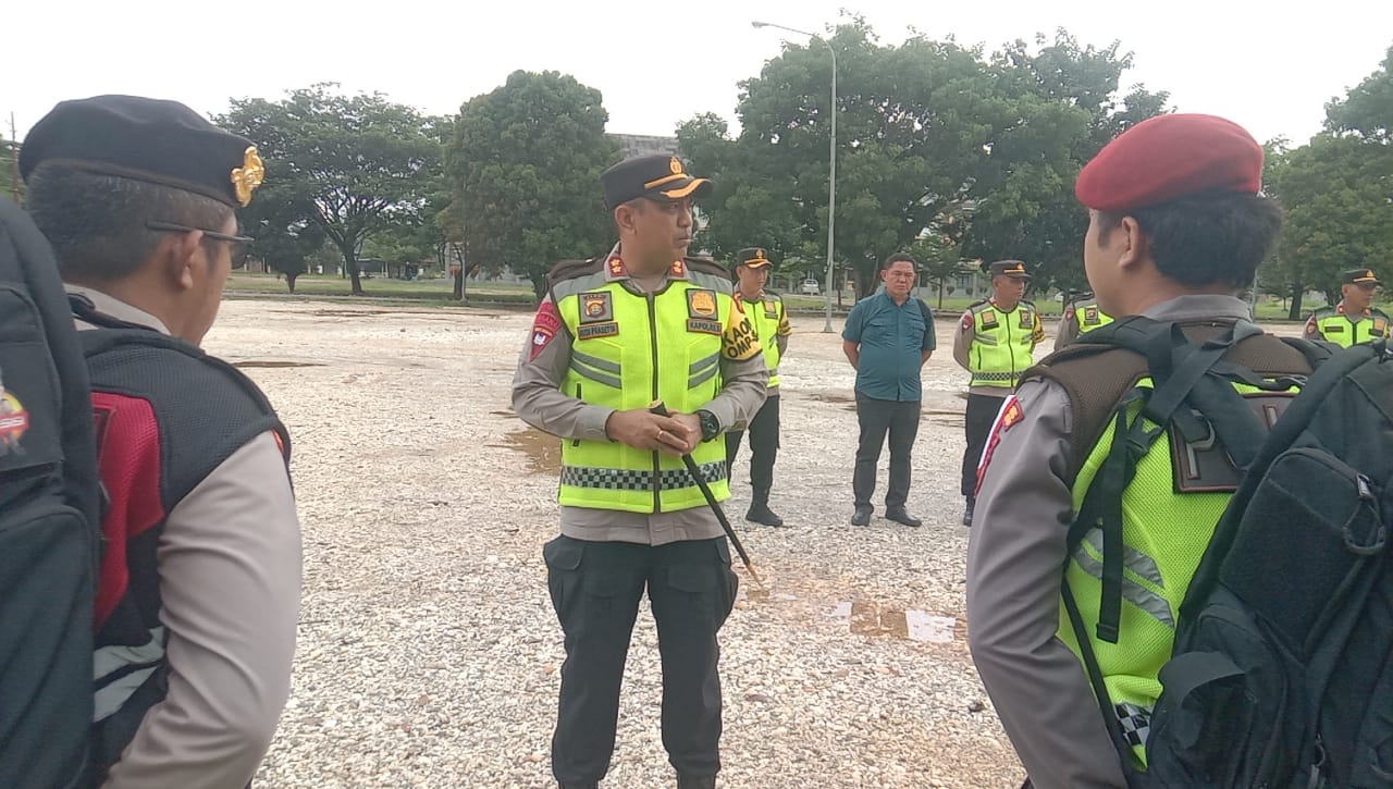 JAMBI.MPN-Kab.Sarolangun _ Bertempat di GOR KONI Sarolangun, Kapolres Sarolangun AKBP Budi Prasetya mengomandoi jalannya apel persiapan personil PAM TPS dan Pendistribusian Logistik untuk wilayah Batang Asai, Limun, Pauh dan Mandiangin Timur, Minggu (24/11).