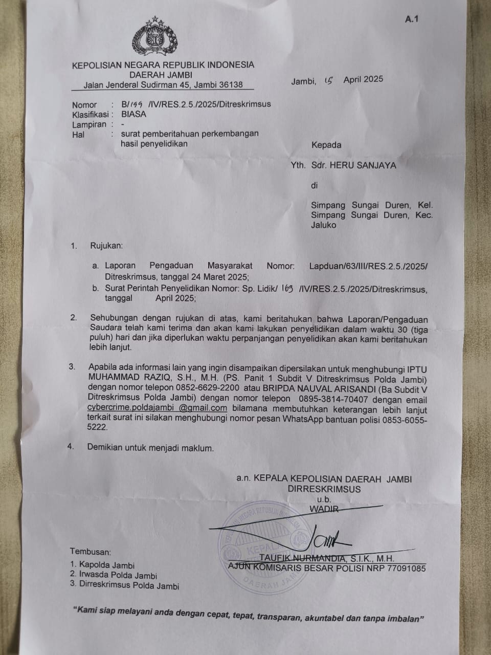 Makatara mengaku sudah melayangkan laporan resmi ke Walikota Jambi, Dinas LH Kota Jambi, dan BPN Kota Jambi sejak 12 September 2025. Namun hingga kini, belum ada balasan ataupun tindak lanjut.