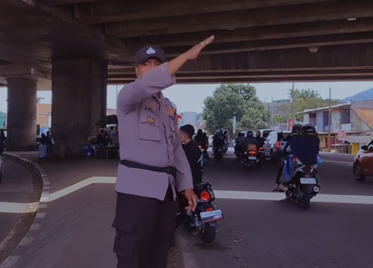 Salah satu upaya yang dilakukan, yakni oleh personel Pos Pelayanan (Pos Yan) Cileunyi, dari Polsek Cileunyi jajaran Polresta Bandung yang turun langsung melaksanakan pengaturan arus lalu lintas di kawasan Underpass flyover tol Cisumdawu Cileunyi Kabupaten Bandung, Selasa (24/03/2026).