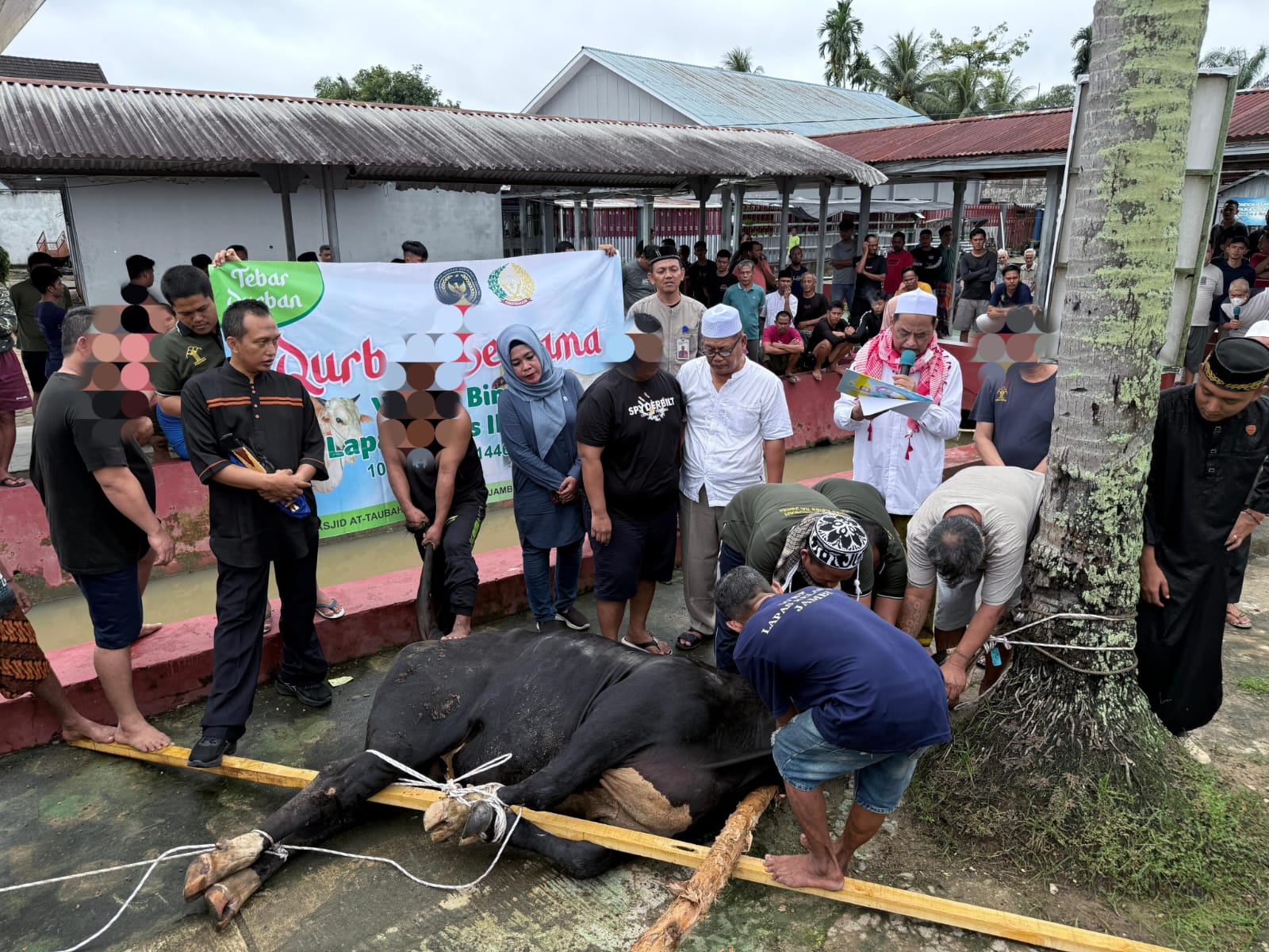 Sebanyak 9 ekor sapi dan 3 ekor kambing dikurbankan serta dagingnya dibagikan kepada berbagai pihak yang membutuhkan.