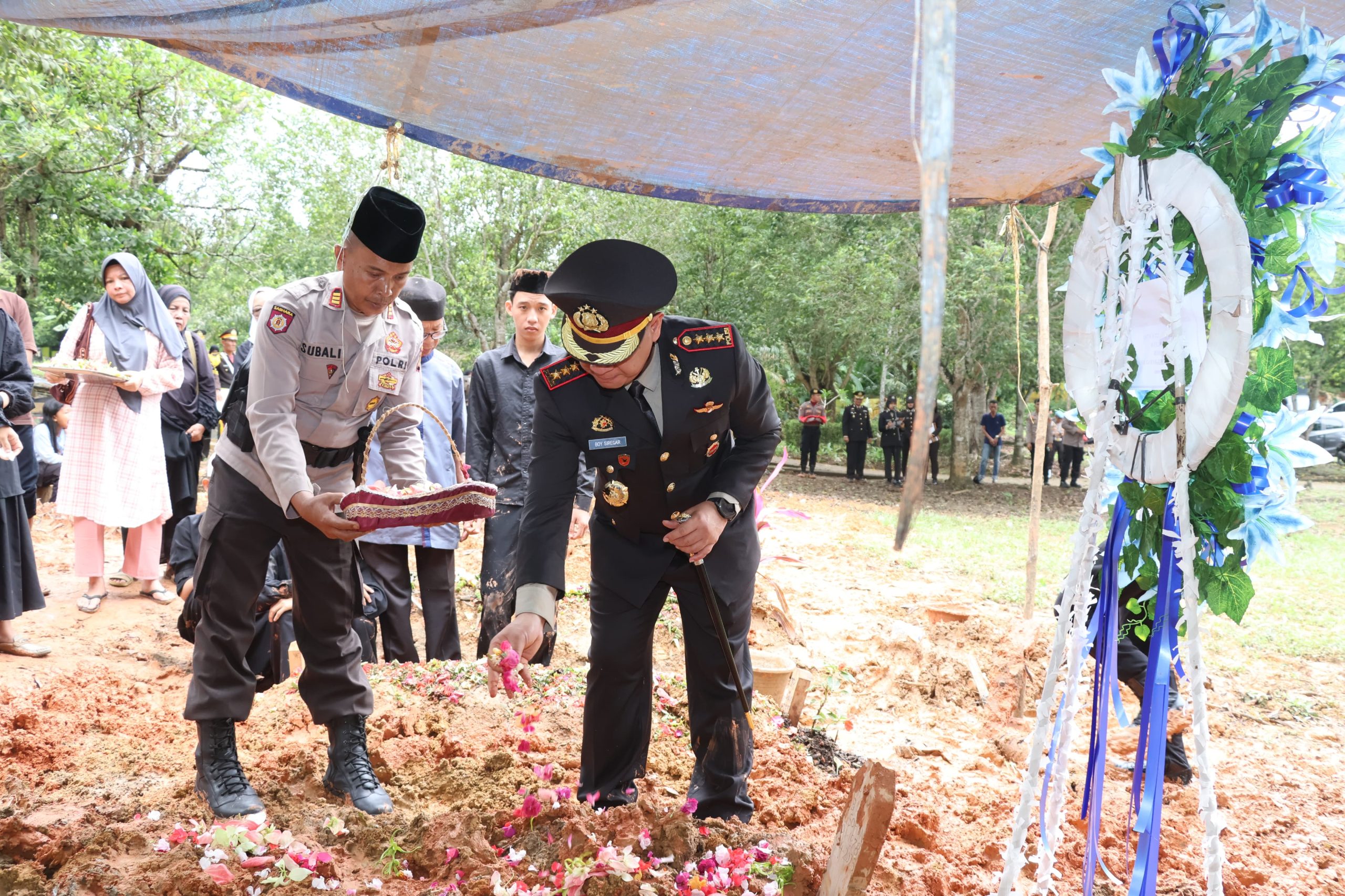 JAMBI.MPN _ Untuk memberikan penghormatan terakhir, Kepolisian Resor Kota (Polresta) Jambi menggelar upacara pemakaman Almarhum Ipda Roni Tua Rambe yang dipimpin oleh Wakapolresta Jambi Akbp Nurhadiansyah selaku inspektur upacara bertempat di TPU Muslim Kel. Tanjung Sari Kec. Jambi Timur Kota Jambi. Sabtu 2 November 2024.
