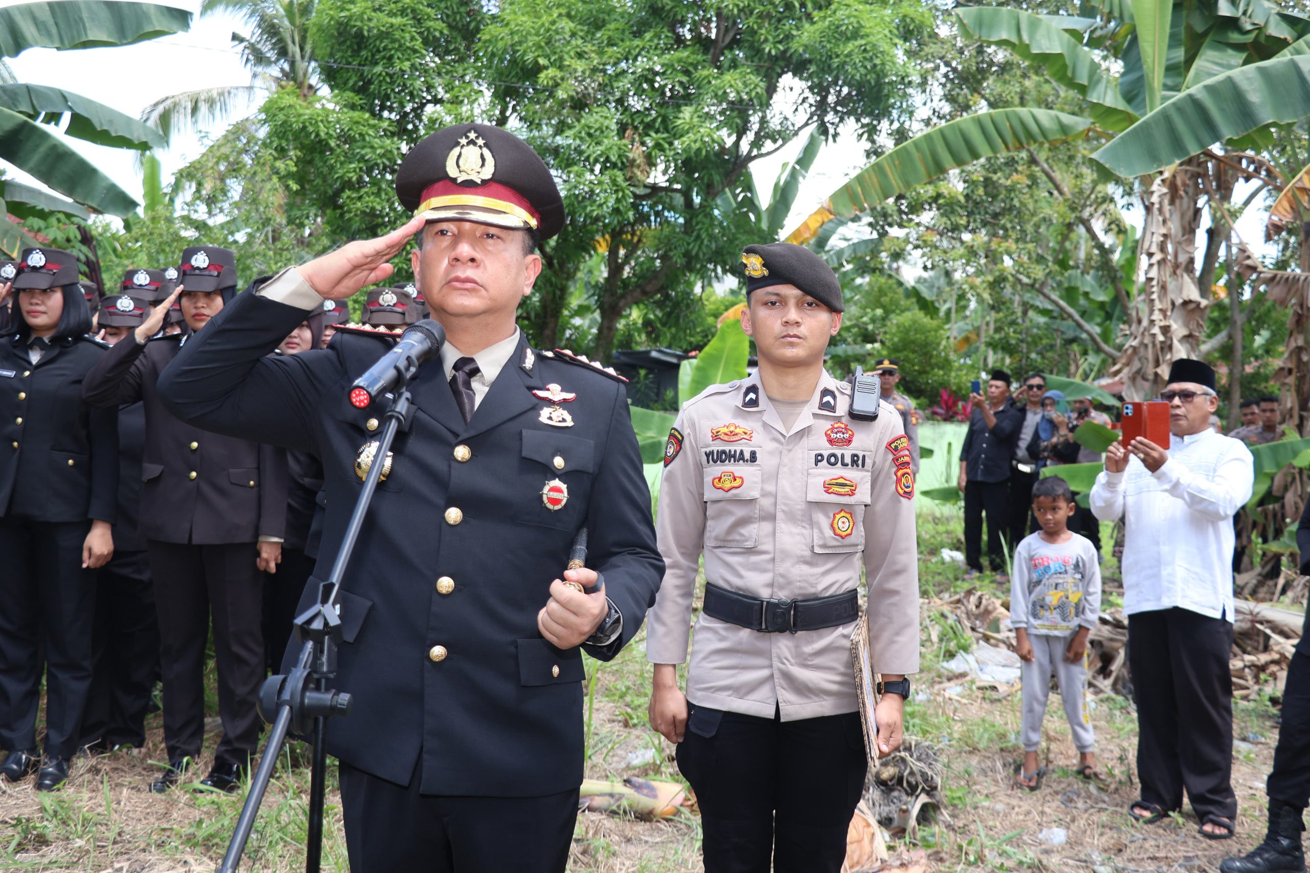 Saya selaku inspektur upacara atas nama nama negara dan kepolisian negara Republik Indonesia, dengan ini turut bela sungkawa yang sedalam-dalamnya serta memohon kepada Allah SWT agar seluruh keluarga Almarhum yang ditinggalkan tetap teguh iman dan diberikan kekuatan dalam menghadapi cobaan ini, kepada almarhum kami semua yang berada disini mengiringi doa atas kepergian almarhum dengan penuh keyakinan semoga almarhum akan berbahagia di alam baka.