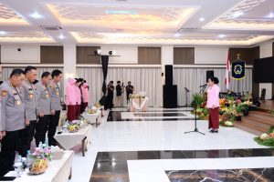 Acara dibuka dengan penayangan video sejarah Bhayangkari yang menggugah rasa bangga, disusul penganugerahan Lencana Bhayangkari Emas kepada Ny. Nurhayati Marzuki, simbol penghargaan atas dedikasi dan pengabdian tulus kepada organisasi Bhayangkari.