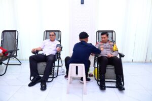 Tampak pada kegiatan tersebut Kapolda Jambi Irjen Pol. Rusdi Hartono bersama Ketua PMI Kota Jambi M. Nassir dan beberapa PJU Polda Jambi turut serta mendonorkan darahnya.