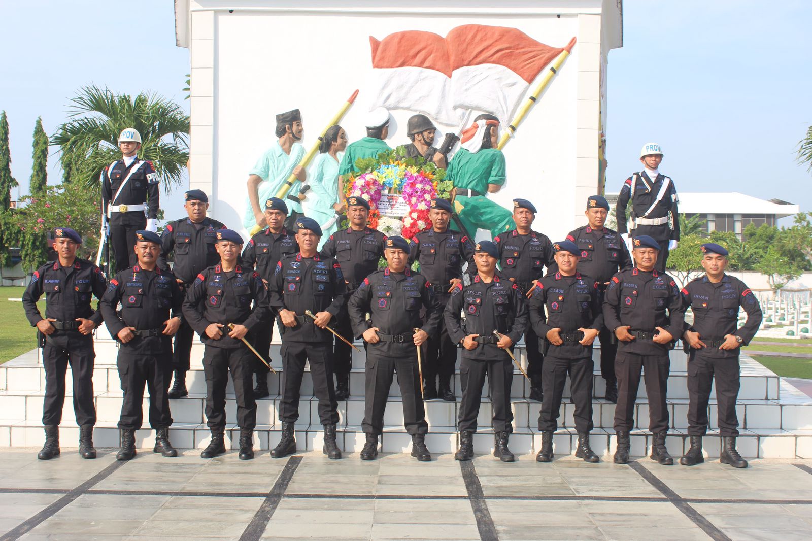 Dansat Brimob Polda Jambi Kombes Pol Nadi Chaidir menjadi Irup pada upacara ziarah makam yang di komandani Detasemen Gegana Kompol Ginda Silalahi dan diikuti para Danyon, Kasi jajaran Brimob serta Personil Brimob.