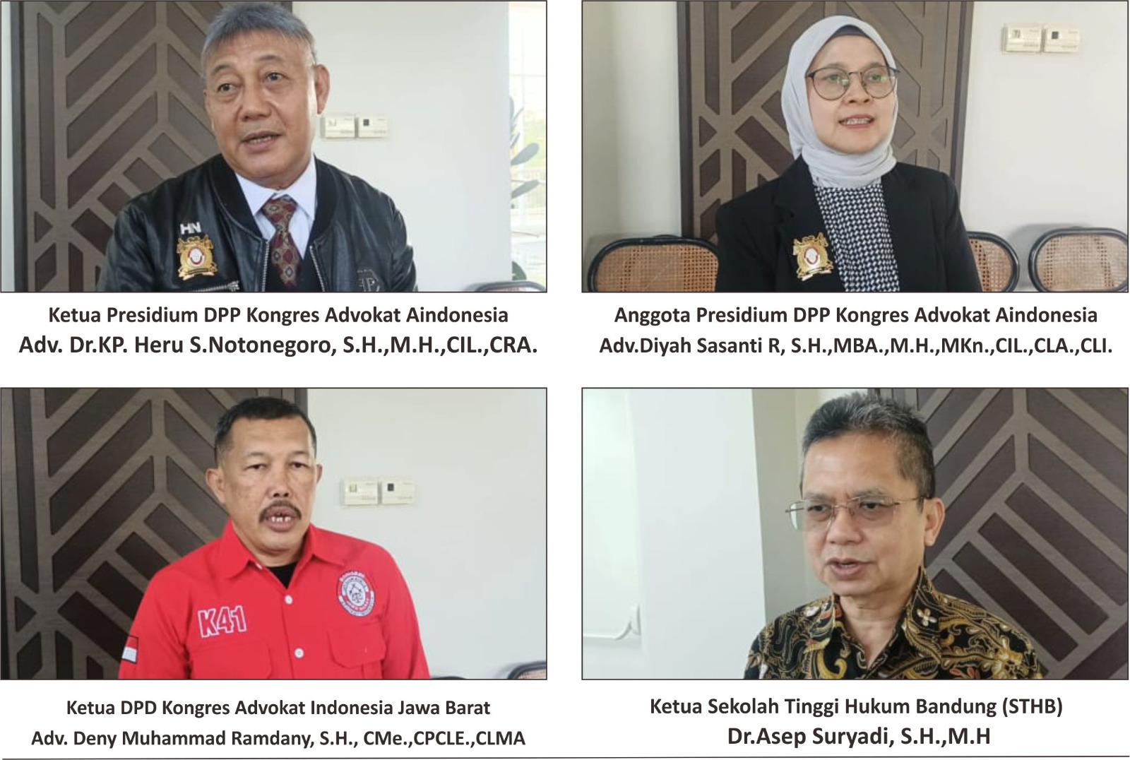 Kemudian Surat Keputusan DPP KAI dengan No. 003/SKEP/DPP-KAI/2022 tertaggal 3 Januari 2022 Tentang Pengurus Dewan Pimpinan Daerah Kongres Advokat Indonesia Jawa Barat Masa Bakti 2021-2026. Surat Keputusan Nomor. 05/DPD-KAI/SKEP-PL/VII/2024 Tentang Sususnan Panitia Pelaksana Pendidikan Lanjutan Dewan Pimpinan Daerah Kongres Advokat Indonesia Jawa Barat tahun 2024.
