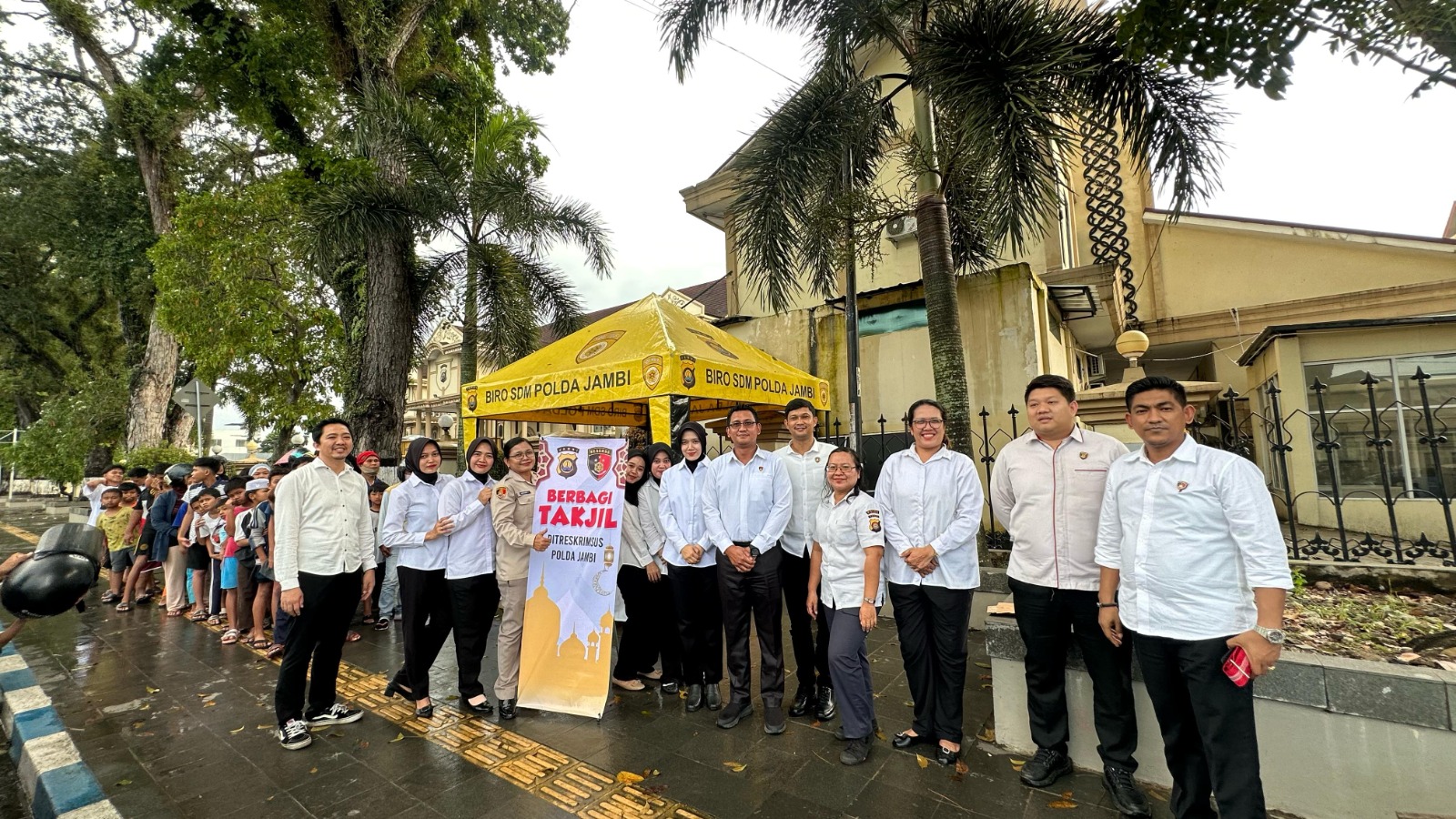 Kegiatan ini berlangsung di jalan utama tepat di depan pintu masuk Kantor Polda Jambi. Pembagian takjil ditujukan untuk membantu masyarakat yang tengah dalam perjalanan dan membutuhkan takjil untuk berbuka puasa.
