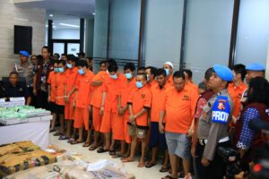 Dari 80 perkara tersebut, Polri telah menetapkan 136 tersangka. Adapun barang bukti yang berhasil disita yaitu sabu seberat 1,7 ton, ganja 1,12 ton, ekstasi 357.731 butir, ketamin 932,3 gram, double L 127.000 butir, kokain 2,5 kilogram, tembakau sintetis 9 kilogram, hasish seberat 25,5 kilogram, MDMA 4.110 gram, mepherdrone 8.157 butir dan happy water 2.974,9 gram.