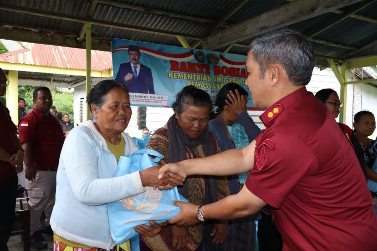 Secara simbolis Kalapas Robinson Peranginangin dan para pejabat struktural memberikan sembako berupa beras, gula dan minyak goreng tersebut kepada warga. Seluruh warga yang hadir sekitar 200 orang, tampak antusias menerima bantuan tersebut.