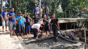 Giat Bakti Sosial Pengecoran Pondok Pesantren Darul Quro Di Panimbang Bersama Para Santri
