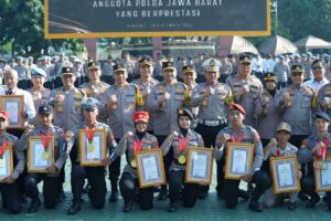 Kapolda Jabar memberikan penghargaan kepada 22 anggota Polda Jabar yang berhasil membawa medali emas, perak serta perunggu pada kejuaraan PON XXI Aceh – Sumut 2024.