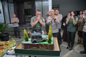 Dalam suasana penuh keakraban dan kekeluargaan, Kapolda Jabar datang secara langsung membawa kue ulang tahun dan menyampaikan ucapan selamat serta doa terbaik untuk Pangdam III/Siliwangi. Momen ini menjadi simbol kuatnya sinergitas dan soliditas antara TNI dan Polri di Jawa Barat.