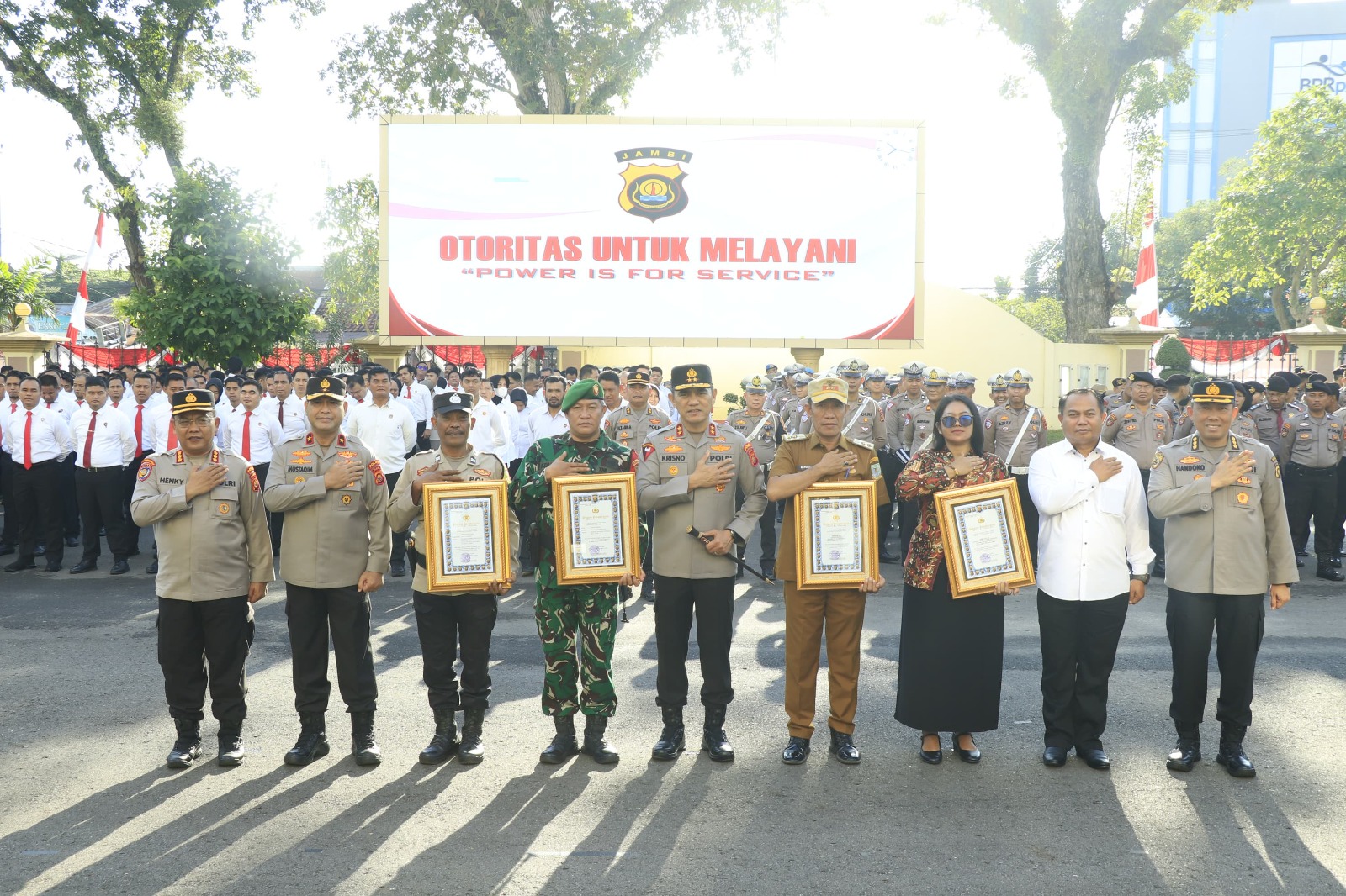 JAMBI.MPN – Komitmen Polda Jambi dalam memberantas peredaran narkoba kembali ditegaskan. Senin pagi (4/8/2025), Kapolda Jambi Irjen Pol. Krisno H. Siregar memimpin Apel Pagi di Lapangan Hitam Mapolda Jambi dan memberikan penghargaan kepada empat tokoh yang dinilai berjasa dalam keberhasilan Program Kampung Bebas Narkoba di Kelurahan Rawasari, Kecamatan Alam Barajo, Kota Jambi.