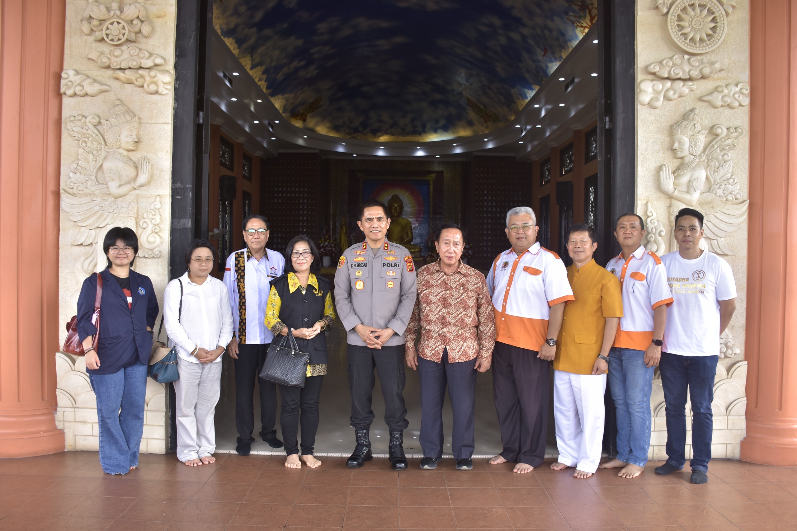 JAMBI.MPN — Kapolda Jambi Irjen Pol. Krisno H. Siregar bersama sejumlah Pejabat Utama Polda Jambi melakukan kunjungan silaturahmi ke Vihara Jaya Manggala, Lebak Bandung, Selasa (02/11/2025). Kehadiran Kapolda dan rombongan disambut hangat oleh pengurus dan tokoh agama Budha Provinsi Jambi.
