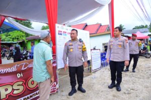 JAMBI.MPN-Kab.Bungo _ Guna memastikan proses pelaksanaan pemungutan suara dalam pilkada serentak 2024 berjalan lancar, Karo Ops Polda Jambi Kombes Pol Edi Faryadi S.H., S.I.K., M.H didampingi Kabid Humas Polda Jambi Kombes Pol Mulia Prianto, S. Sos., S.I.K memantau langsung kegiatan pemungutan suara di beberapa TPS di wilayah Kabupaten Bungo, Rabu (27/11/2024).