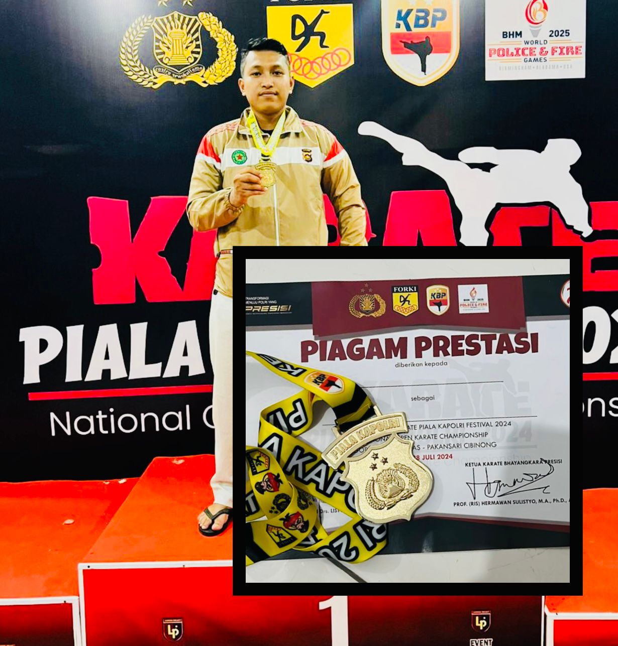 BOGOR.MPN – Anggota Satuan Brimob Polda Jambi kembali mengharumkan nama kesatuan dengan berhasil meraih Medali Emas dalam berlaga dibidang olahraga Beladiri Karate kategori Komite Perorangan Putra intern Polri pada Event Kapolri CUP Tahun 2024.