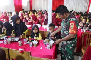 “Melalui kegiatan ini, kami berupaya memastikan anak-anak mendapatkan gizi yang cukup agar tumbuh sehat. Selain itu, kami juga memberikan wawasan kebangsaan agar mereka memahami pentingnya nilai-nilai persatuan dan cinta tanah air sejak dini,” ujar Kapten Arm Abasri.