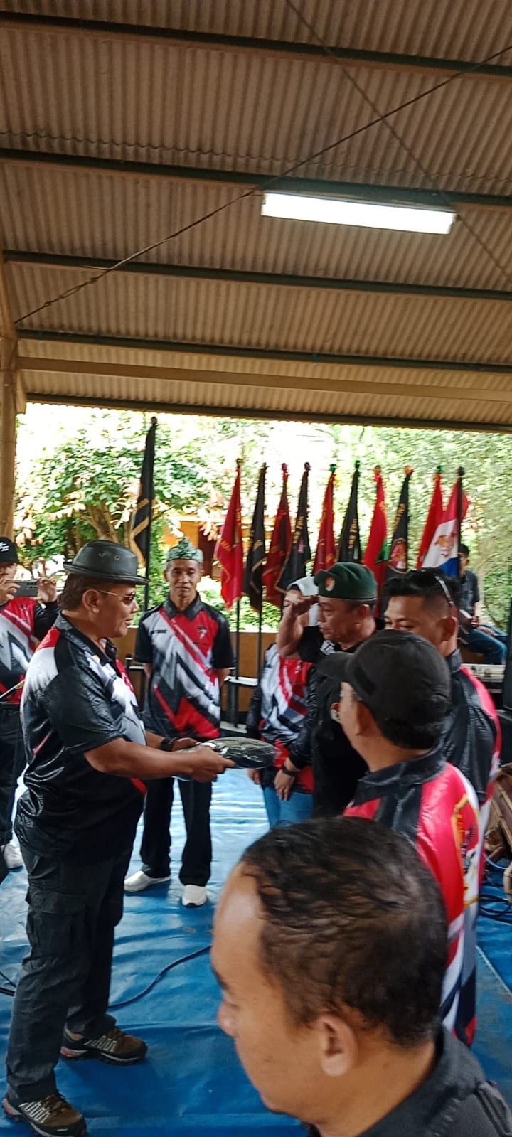 Bapak Eko .S dalam sambutanya membawakan pesan dari bapak Ruslan Buton selaku panglima eks trimatra nusantara yang berhalangan hadir di jawa barat karena sedang ada misi kegiatan lain.Bapak H.Cecep Akhmad Hamzah , SH.MH sekjen serdadu eks trimatra wilayah jawa barat dalam sambutanya berikan motivasi anggota dan program program lembaga.