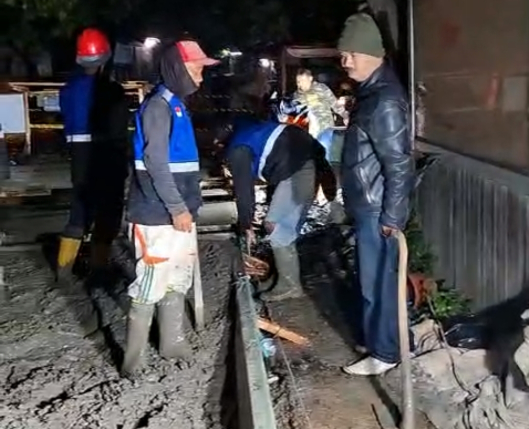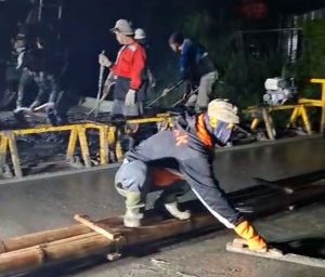 ” Pengecoran jalan ini dilakukan dengan menggunakan APBD Kabupaten Bandung. Panjang jalan yang dicor beton ini adalah 480 meter dengan lebar 5 meter ketebalan 20 cm plus LC 5 cm . Proses pengecoran dilakukan oleh tenaga kerja pihak ke 3, dengan Kontrol ketat dari Dinas PUPR,” tutur Ujang pelaksana teknis dilapangan.