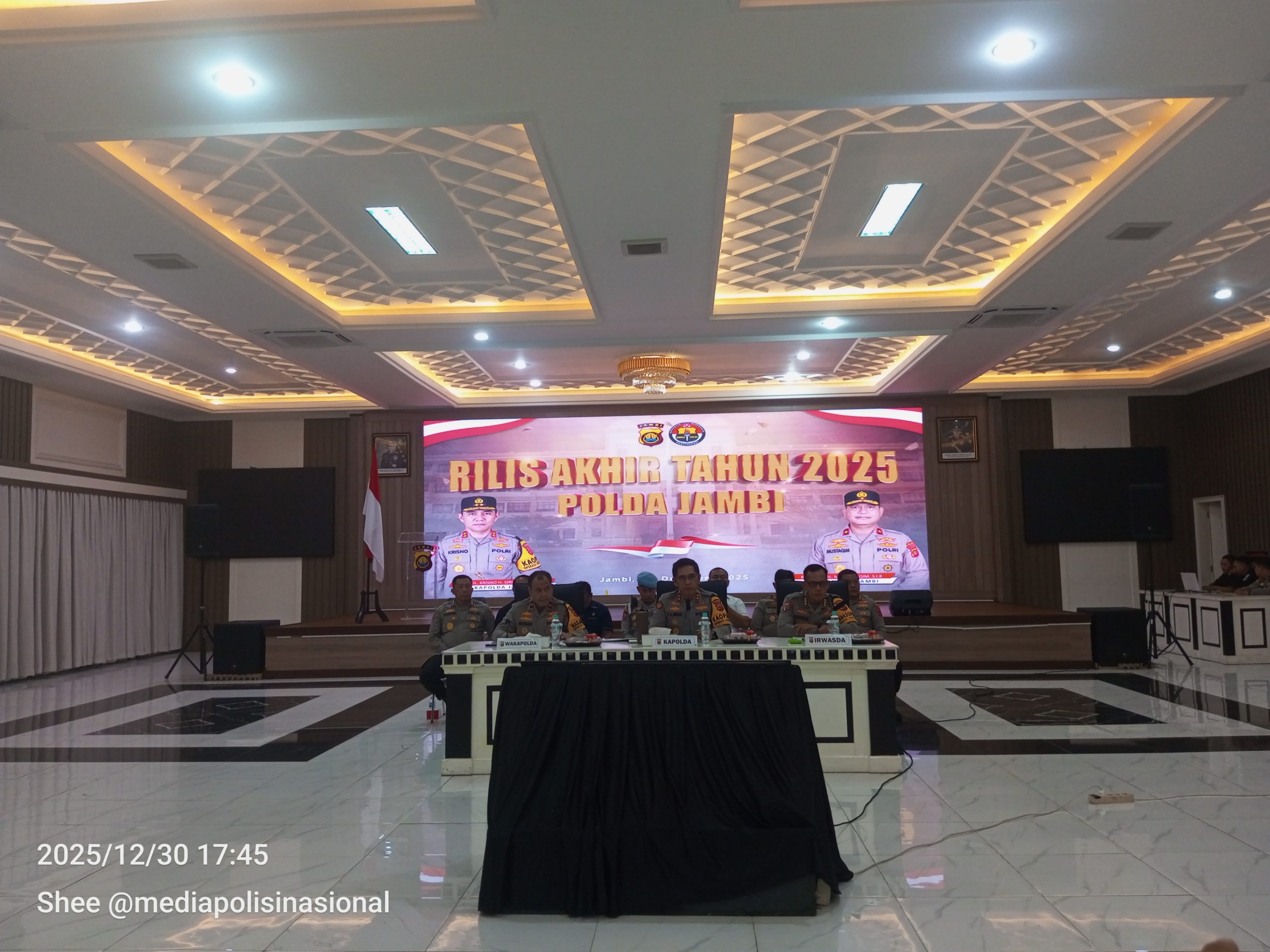 JAMBI.MPN – Kepolisian Daerah (Polda) Jambi menutup rangkaian kinerja tahun 2025 dengan menyampaikan capaian dan prestasi terbaik kepada insan media dalam Rilis Akhir Tahun yang digelar di Mapolda Jambi, Selasa (30/12/2025).
