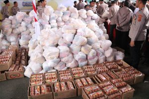 Selain itu, kegiatan ini juga terhubung dengan Kapolri Jenderal Listyo Sigit Prabowo melalui Zoom Meeting yang memberikan sambutan dan menyerahkan paket bantuan secara simbolis.