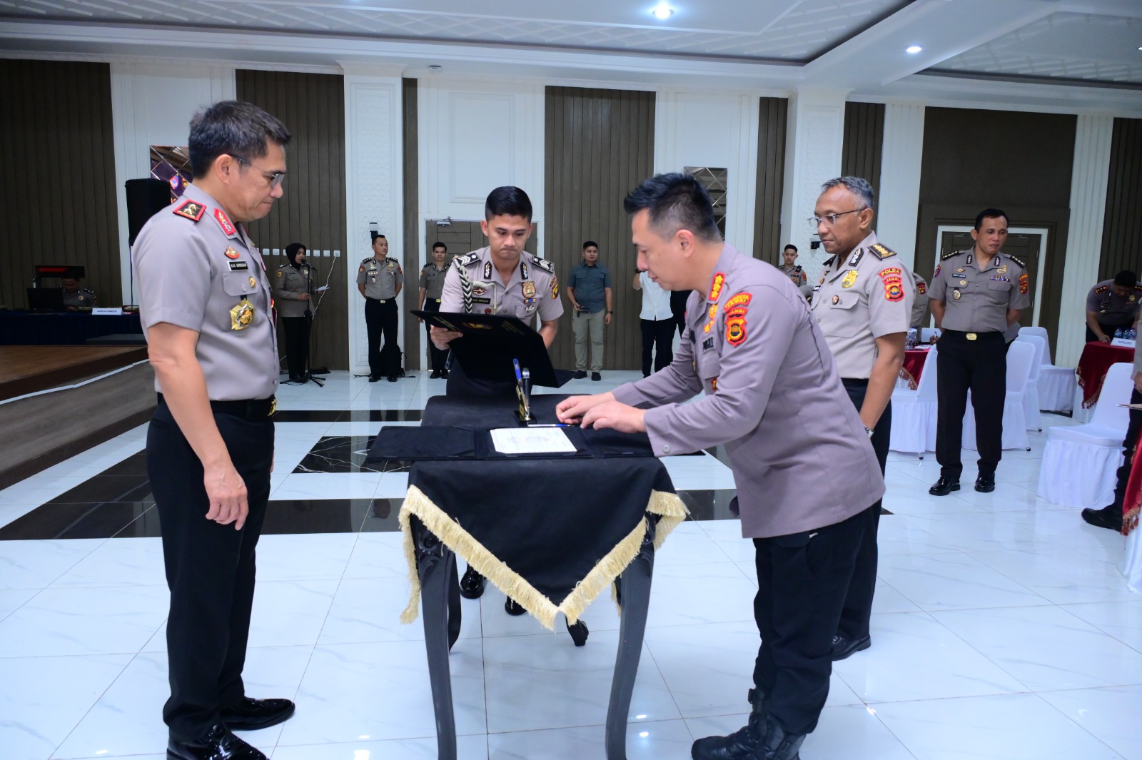 Kegiatan dilanjutkan dengan penandatanganan Pakta Integritas Tahun Anggaran 2026 oleh perwakilan Satker, yakni Karo Ops Polda Jambi dan Kapolresta Jambi, bersama Kapolda Jambi.