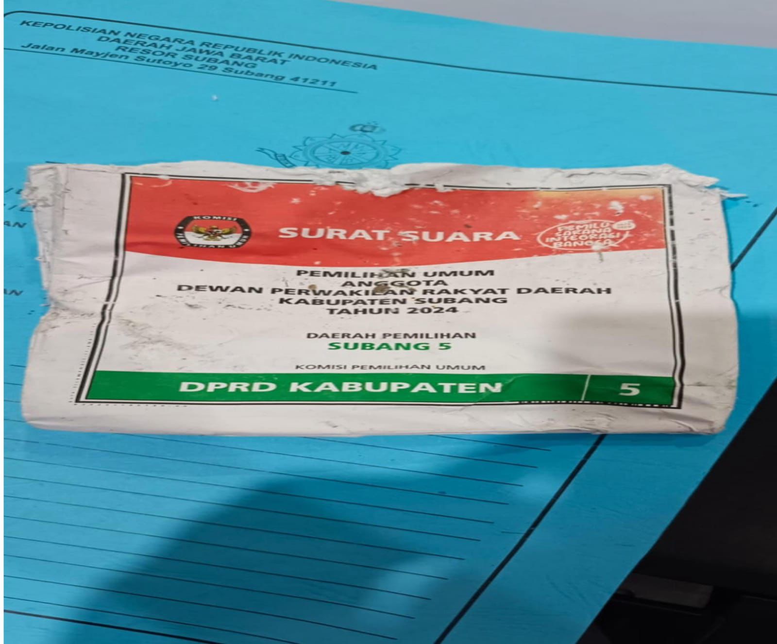 Sebagai barang bukti, polisi telah mengamankan kendaraan yang digunakan pelaku serta sisa kertas suara pemilu. Saat ini, pelaku tengah menjalani pemeriksaan intensif di Mapolres Subang dan dijerat dengan Pasal 363 KUHP tentang Pencurian dengan Pemberatan.
