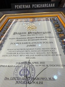JAMBI.MPN-Kab.Sarolangun _ Polres Sarolangun meraih penghargaan sebagai penilaian terbaik Indikator Kinerja Pelaksanaan Anggaran (IKPA) tahun 2025 dari Kementerian Keuangan (Kemenkeu). Penghargaan itu diberikan karena Polres Sarolangun berhasil menunjukkan penggunaan anggaran dengan efektif, efisien dan transparan dalam mengelola anggaran, serta memberikan manfaat yang signifikan bagi masyarakat, Kamis (22/5/2025).
