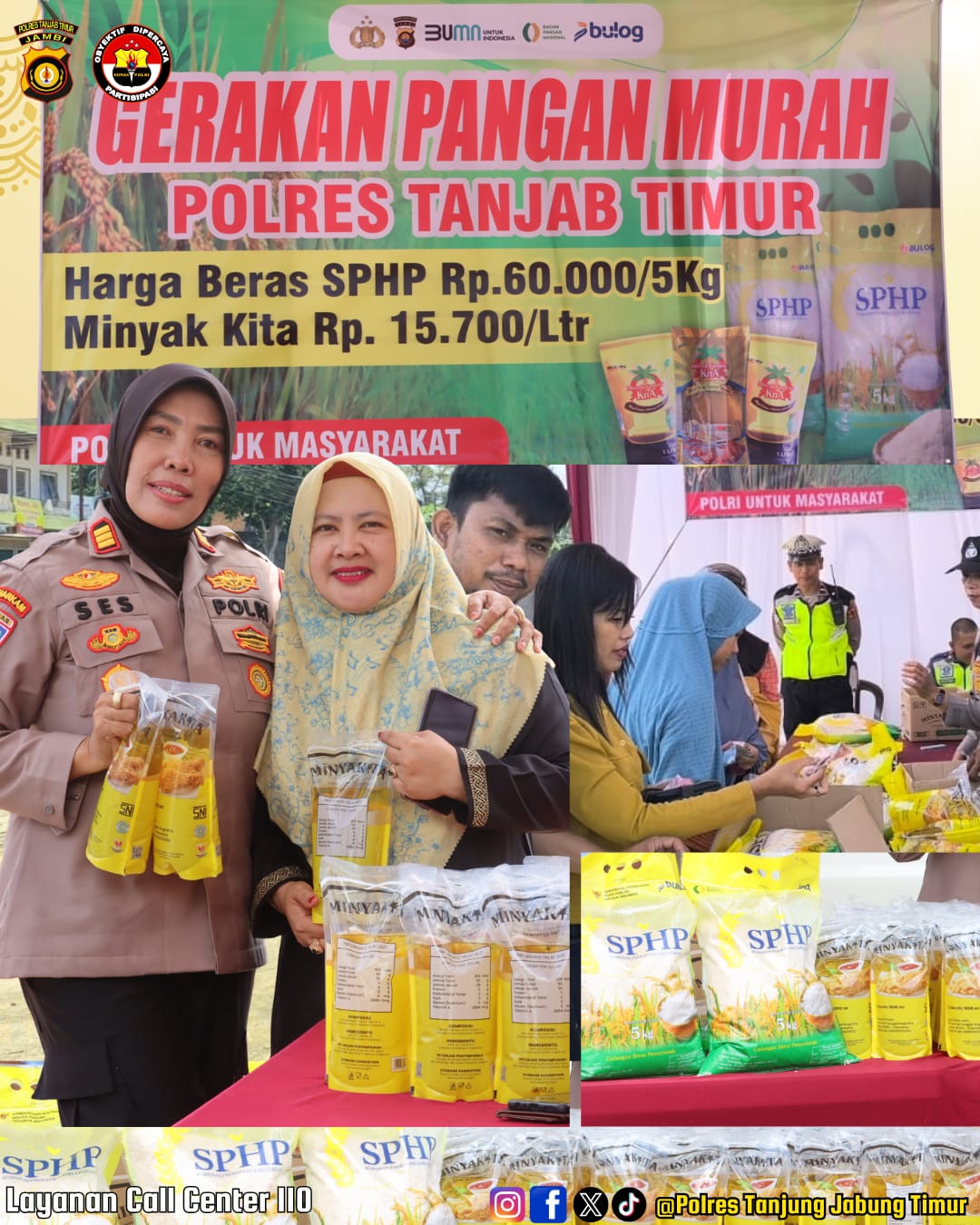 Kegiatan yang digelar oleh Sat Binmas Polres Tanjung Jabung Timur ini dipimpin langsung oleh Kasat Binmas AKP Ses Ekowati, S.H. sebagai bentuk kepedulian Polri terhadap kondisi ekonomi masyarakat.