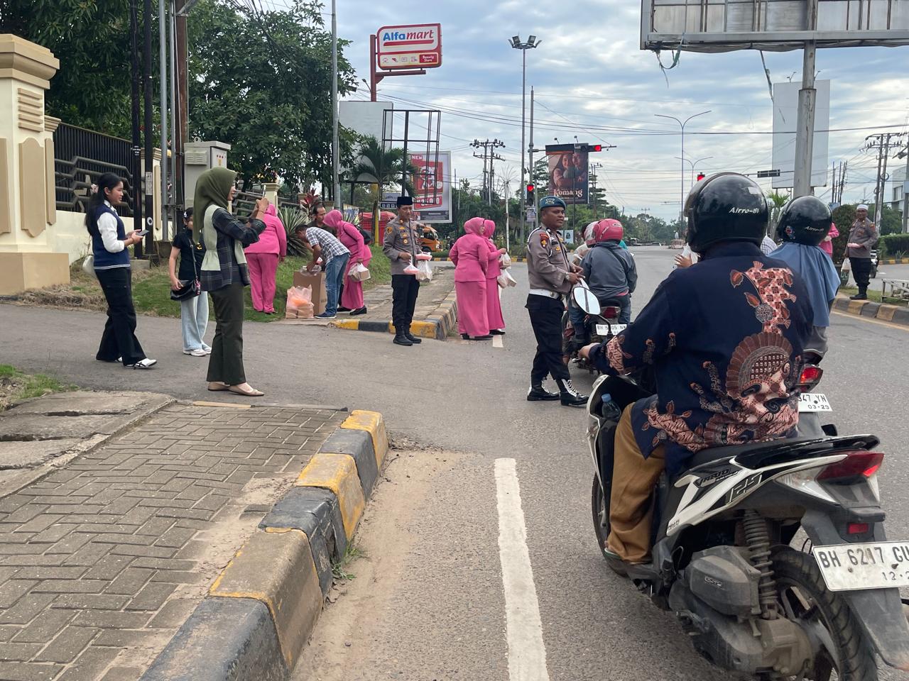 JAMBI.MPN _ Polsek Kota Baru bersama Personil dan Pengurus Bhayangkari Ranting Polsek Kota Baru memberikan Takzil gratis untuk Berbuka Puasa kepada masyarakat yang melintas didepan Mako Polsek Kota Baru dalam rangka menyambut Bulan Suci Ramadhan tahun 2025. (07/03/25)