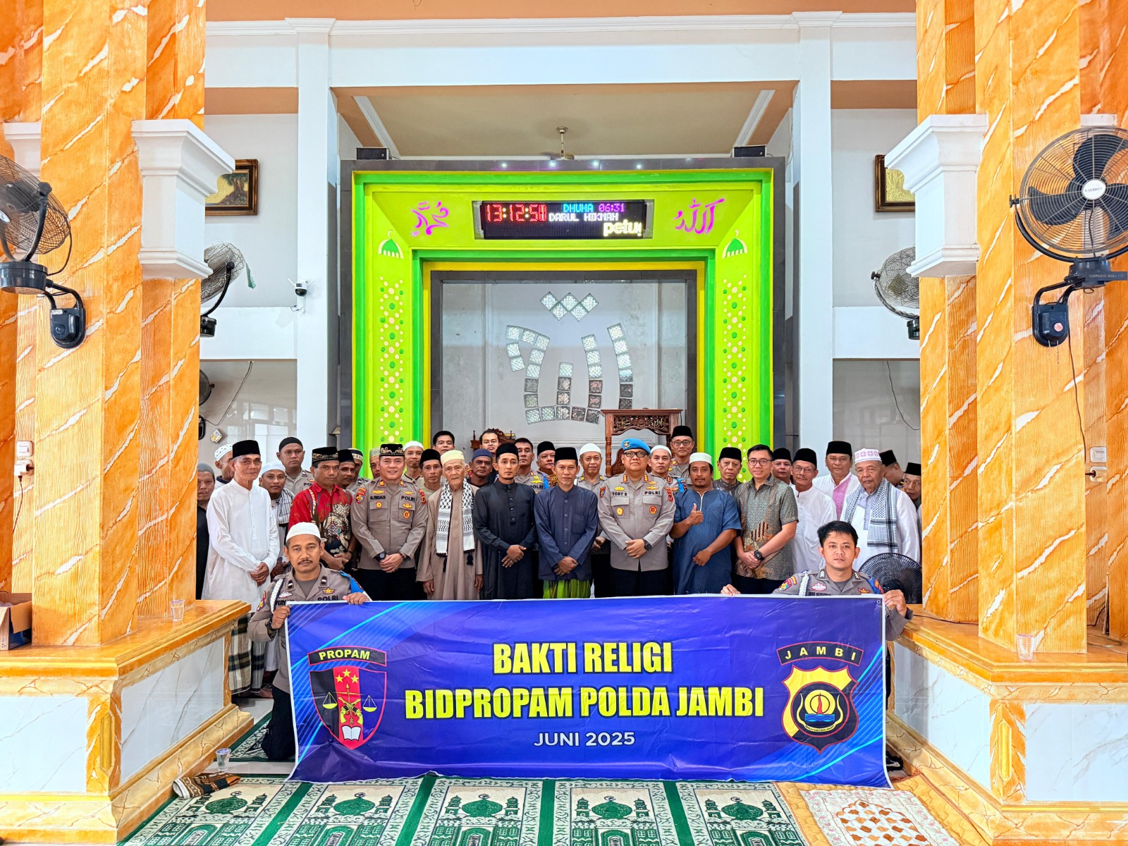 JAMBI.MPN — Dalam rangka menyambut Hari Bhayangkara ke-79, Bidang Profesi dan Pengamanan (Bidpropam) Polda Jambi menggelar kegiatan bertajuk “Giat Simpatik Polri untuk Masyarakat”, yang dilaksanakan melalui aksi Bakti Religi dan Sholat Jumat Keliling bersama warga di Masjid Darul Hikmah, Lorong Kenanga 1, Kelurahan Talang Bakung, Kota Jambi, Jumat (20/06/25)
