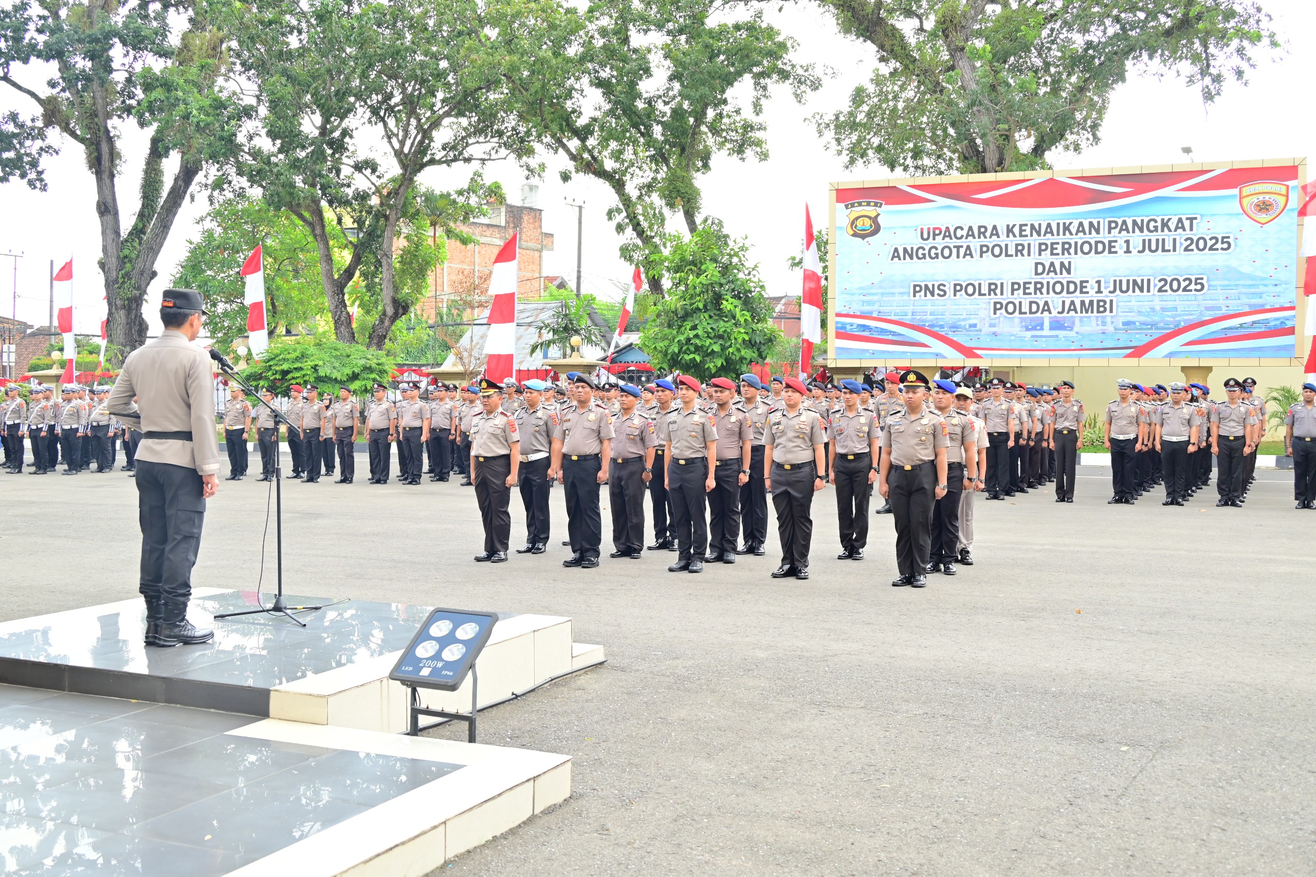 Upacara penuh khidmat ini dipimpin langsung oleh Kapolda Jambi, Irjen Pol. Krisno H Siregar, yang bertindak sebagai Inspektur Upacara. Turut hadir Wakapolda Jambi Brigjen Pol M. Mustaqim, Irwasda Kombes Pol Janus Parlindungan Siregar, para pejabat utama Polda, Bhayangkari, serta seluruh personel yang naik pangkat.