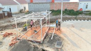 Yang menarik, seluruh proses pembangunan dilakukan secara swadaya dan gotong royong. Para bapak-bapak bersama pemuda lingkungan tampak bahu-membahu, mulai dari persiapan material hingga pengerjaan fisik bangunan. Suasana kerja penuh keakraban, diselingi canda dan obrolan ringan, mencerminkan kuatnya ikatan sosial antarwarga.