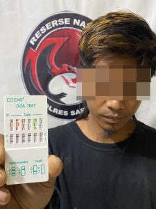 Barang bukti yang diamankan polisi berupa 1 klip plastik bening berisi serbuk kristal diduga narkotika jenis sabu, 27 (dua puluh tujuh) plastik klip bening kosong, 1 (satu) unit sepeda motor CBR warna hitam, 1 helai tisu, 1 (satu) plastik warna hitam, 1 (satu) handphone OPPO warna hitam.