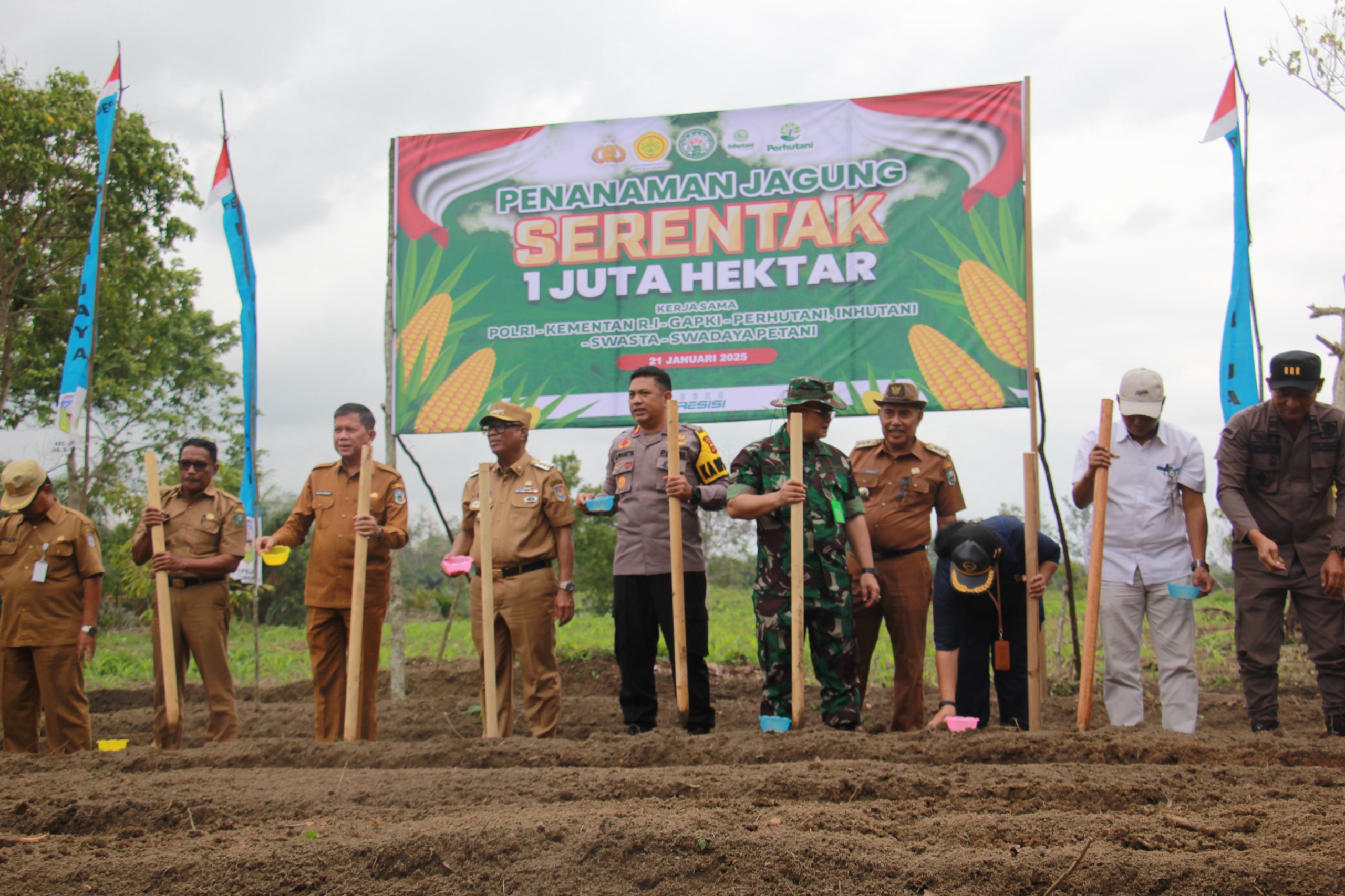 AKBP Budi Prasetya menyebut bahwa kegiatan ini merupakan bentuk Kerja sama dari Polri, Kementan RI, GAPKI, Perhutani, Inhutani, Swasta dan Swadaya Petani.