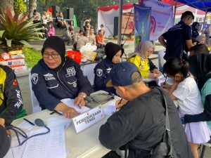 Wakapolda Jabar menyambangi sejumlah pelayanan masyarakat yang digelar seperti cek kesehatan gratis, pelayanan perpanjang Surat Izin Mengemudi (SIM) hingga Surat Keterangan Catatan Kepolisian (SKCK).