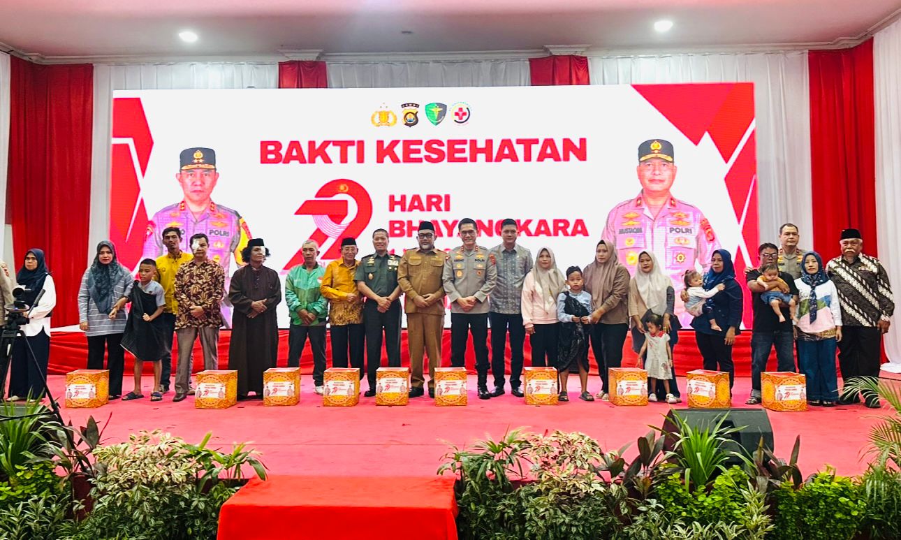Kegiatan Bakti Kesehatan Polri dalam rangka Hari Bhayangkara ke 79 dihadiri langsung oleh Kapolda Jambi Irjen Pol Krisno H Siregar didampingi Wakapolda Brigjen Pol M Mustaqim, Gubernur Jambi Dr H Al Haris yang diwakili Sekda Provinsi Jambi DR H Sudirman, SH, Ketua DPRD Provinsi Jambi M Hafiz Fatah, Tokoh Agama Dr H Umar Yusuf, Ketua PP Polri Jambi Irjen Pol (P) Bambang Suparsono, Danrem 042 Gapu Brigjen TNI Heri Purwanto, serta Pejabat Utama Polda Jambi serta undangan lainnya.